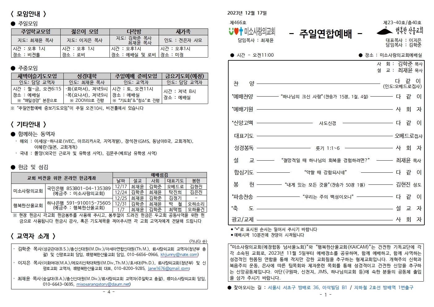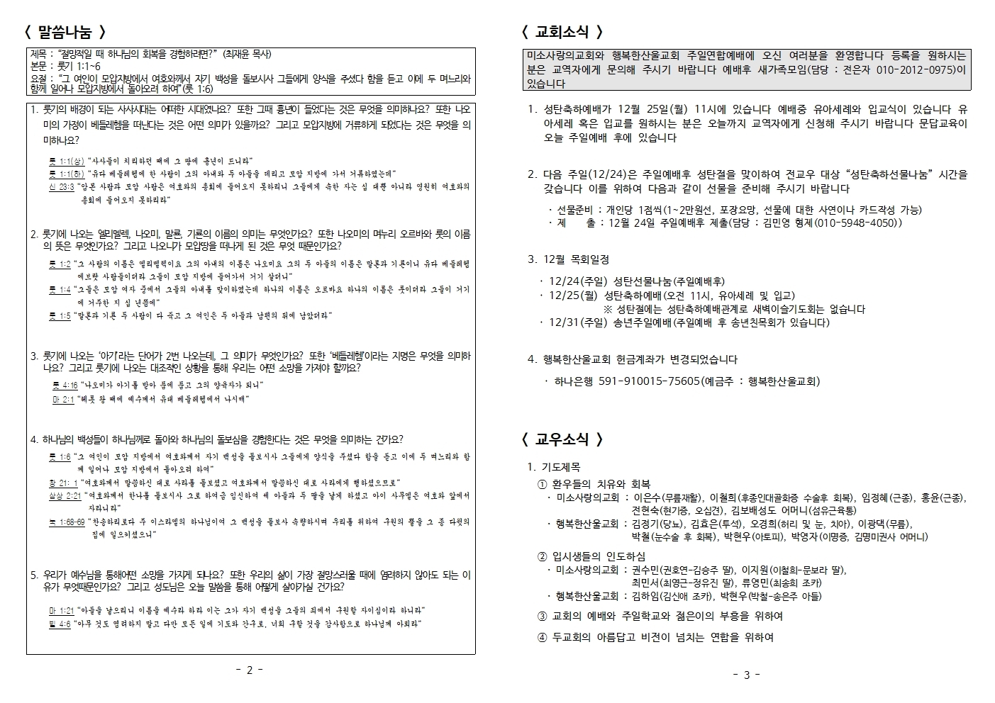 룻기 - 회복시리즈 1과 : 1장1-6절 /2023년12월17일