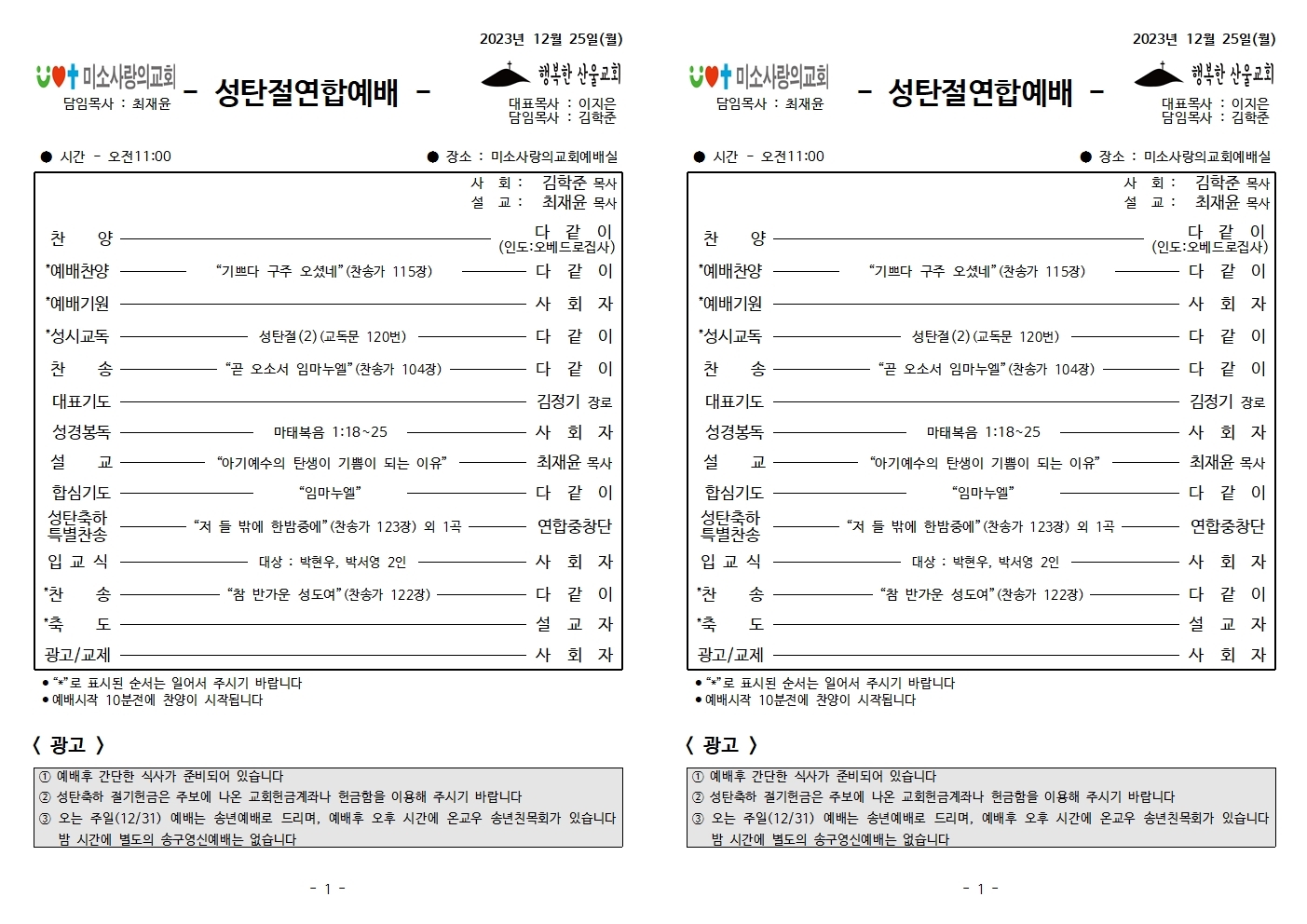 성탄절 연합예배 / 2023년12월25일