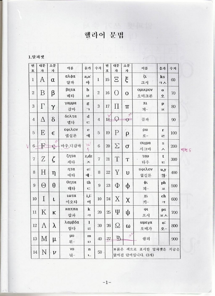 헬라어 한글음 20회이상 읽고 쓰기