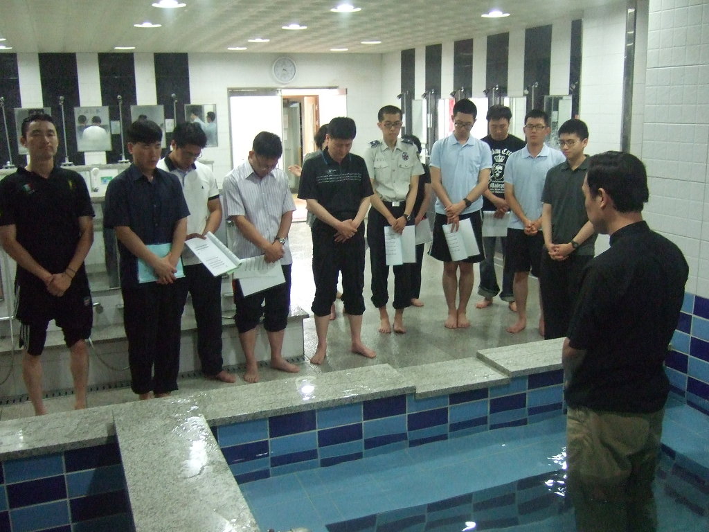 침례탕이 따로 없는 관계로 행정계의 협조를 얻어 지하 2층 목욕탕(경복의 샘)을 사용해 거행했습니다.