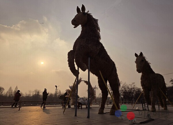[미술여행=류재림 편집위원]<미술여행 신문>이 다가오는 2026년 병오년 새해(붉은 말)를 앞두고 서울 마포구 상암동 월드컵공원에 설치되어 시민들의 시선을 사로잡고 있는 ‘억새말 형제’ 조형물을 독자들에게 소개한다.