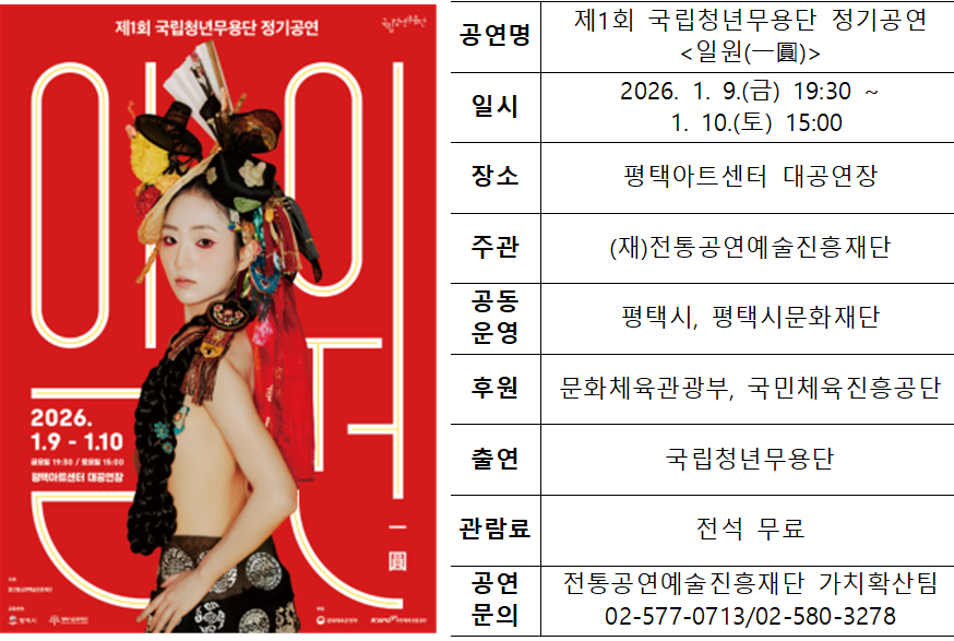 태그#제1회국립청년예술단정기공연#전통공연예술진흥재단#국립청년무용단정기공연일원一圓#평택아트센터대공연장#국립청년무용단#국립청년연희단#1월첫정기공연#국립부산국악원#시즌제예술단체#국립청년연희단정기공연당산로그Log#미술여행