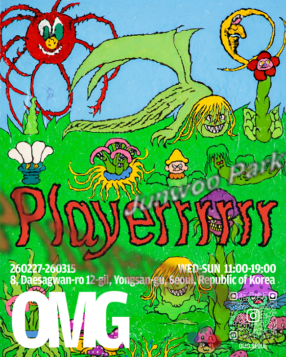 용산구 한남동에 위치한 OMG의 첫 전시 "플레이어 Playerrrrrr"는 2월 26일 VIP 프리뷰를 시작하고 2월 27일부터 3월 15일까지 일반 관람이 가능하다.