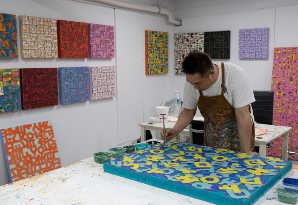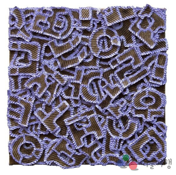 이건만은 지난 20여 년간 한글을 디자인해 온 미학적 통찰을 바탕으로 소통에 대한 근원적인 질문을 던집니다. 작가는 천 위에 문자를 그리고, 자르고, 겹겹이 칠하기를 반복하며 형식적인 겉모습에 집중하느라 놓쳐버린 ‘언어의 속살’을 집요하게 파고듭니다. 화려한 문자 패턴 뒤에 숨겨진 우리의 언행 불일치와 이기적인 불통을 드러내며, 우리가 진정으로 마주해야 할 소통의 본질이 무엇인지 성찰하게 합니다.