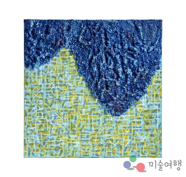 사진; 이건만_언어의 깊이_25.09.20.1__Acrylic_paint_on_Fabric_and_Canvas__61X61cm