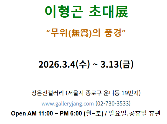 [미술여행=엄보완 기자]장은선갤러리(서울시 종로구 운니동19)가 이형곤 초대展: “무위(無爲)의 풍경”전시를 개최한다.