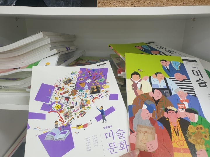 미술실 정리하고 있는데, 작년에 아이들이 놓고간 미술 교과서가 많아서 버리기 전에 나눔 하고자 합니다~