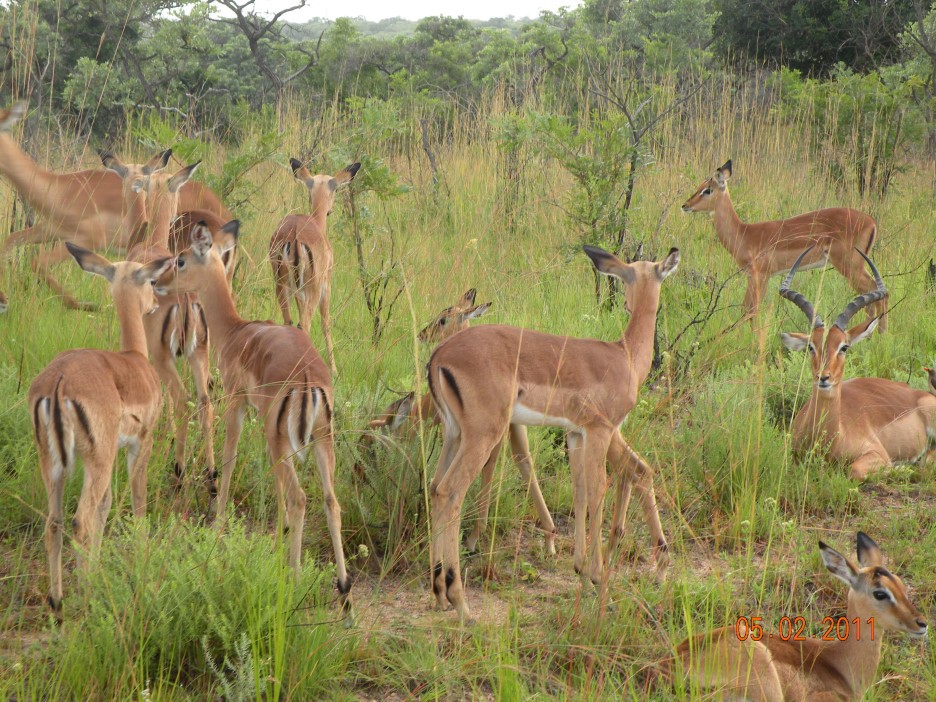 임팔라 ; 영양의 일종인 임팔라는 앙골라‧케냐 등 아프리카 중부 이남지역의 탁 트인 초원지대에서 큰 무리를 지어 서식한다. 늘씬한 자태와 놀라면 3미터씩 껑충 뛰어오르는 모습으로 사람들의 사랑을 받고 있다. 수컷은 30~50㎝의 잘생긴 뿔을 가지고 있지만, 이것은 저네들끼리 암컷을 차지하기 위해 싸울 때만 유효한 무기일 뿐 맹수에게는 덤빌 생각도 못한다. 사자‧치타‧하이에나‧리카온‧악어 등 모든 맹수들이 가장 즐겨 잡아먹는 연약한 동물이다. 다만 한 번 점프에 9미터씩 뛰어 시속 70㎞ 속도로 달아나기 때문에 천적을 잘 피한다. 금색에서 적갈색까지 다양한 스펙트럼의 털을 가지고 있으며, 넓적다리에 수직으로 나 있는 검은 줄이 날렵하고 멋지게 보인다.