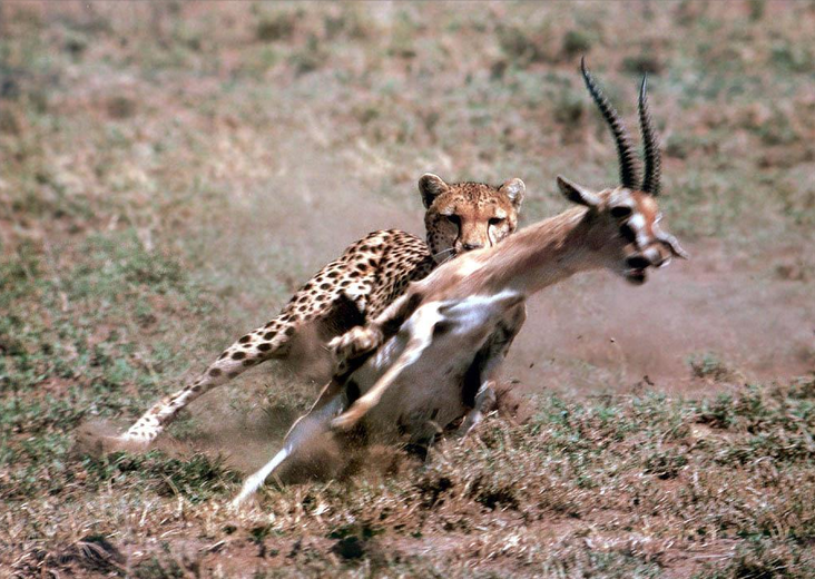 톰슨가젤 ; 외모는 임팔라와 비슷하지만 헐썩 작다. 대신 임팔라보다 빠른 시속 80~90km의 속도로 천적을 피해 도망친다. 톰슨가젤을 즐겨 잡아먹는 동물이 많다보니 개체수가 급감하여 2008년 유네스코에 의해 멸종위기종으로 지정됐다. 톰슨가젤이란 이름은 스코틀랜드 탐험가 조셉 톰슨을 기리기 위해 붙인 명칭이다. 평균 몸길이는 80~120cm, 무게는 수컷 20~35kg, 암컷 15~25kg다. 암수 모두 위로 곧게 뻗은 뿔이 나있다. 털은 전체적으로 밝은 황토색이다. 측면 앞다리에서 뒷다리까지 굵은 검은색 줄무늬가 있다. 꼬리는 검은색으로 길이는 약 15~27cm다. 눈 주변의 흰 고리와 눈 아래쪽에서 코까지 이어지는 검은 줄무늬가 특징이다. 초식성으로 나뭇잎보다는 풀을 선호한다. 적게는 다섯 마리에서 많게는 수십 마리까지 무리지어 생활한다. 계절이나 환경에 따라 단체로 이동하는데, 우기에는 그 지역에 머물며 신선한 풀을 먹고 건기에만 먹이를 찾아 이동한다.