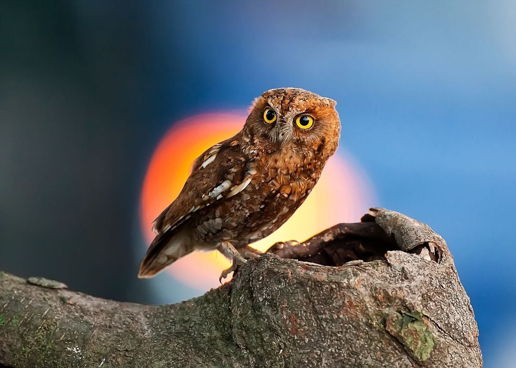 소쩍새 ; 우리나라의 대표적인 여름철새로 야행성 맹금이다. 몸길이는 20㎝ 내외인데 암컷이 약간 크다. 정확하게 동그란 원을 이루고 있는 노란색 홍채가 특징이며, 몸 색깔은 회색형과 적색형이 있다. 홍채가 오렌지색으로 돌연변이를 한 희귀종도 있다. 번식기는 5~6월로 4~5개의 알을 낳아 암수가 교대로 품어 부화시킨다. 소쩍새‧부엉이‧올빼미 등 야행성 맹금은 탁란을 하지 않고 모두 직접 품어서 부화시킨다. ‘소쩍, 소쩍’ 하고 우는 해에는 흉년이 들고, ‘소쩍다, 소쩍다’ 하고 울 때는 풍년이 든다는 전설이 있다. 구슬픈 울음소리 때문에 소쩍새와 관련된 전설이 매우 많은데, 대부분 두견이라는 잘못된 이름으로 전해온다.