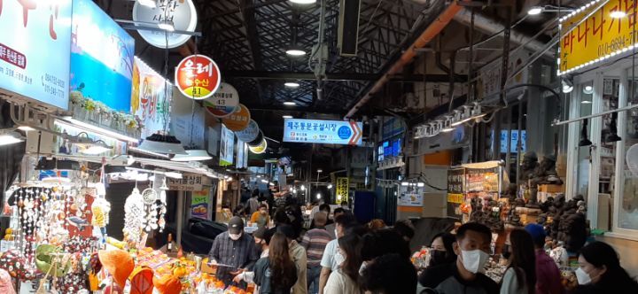 공항 앞 해태농수산물센터라는 가게에 들려 선물 하나를 사고 하버 호텔로 가다 동문시장이라는 간판을 보고 체크인 후 이 시장 구경을 가기로 했다.
