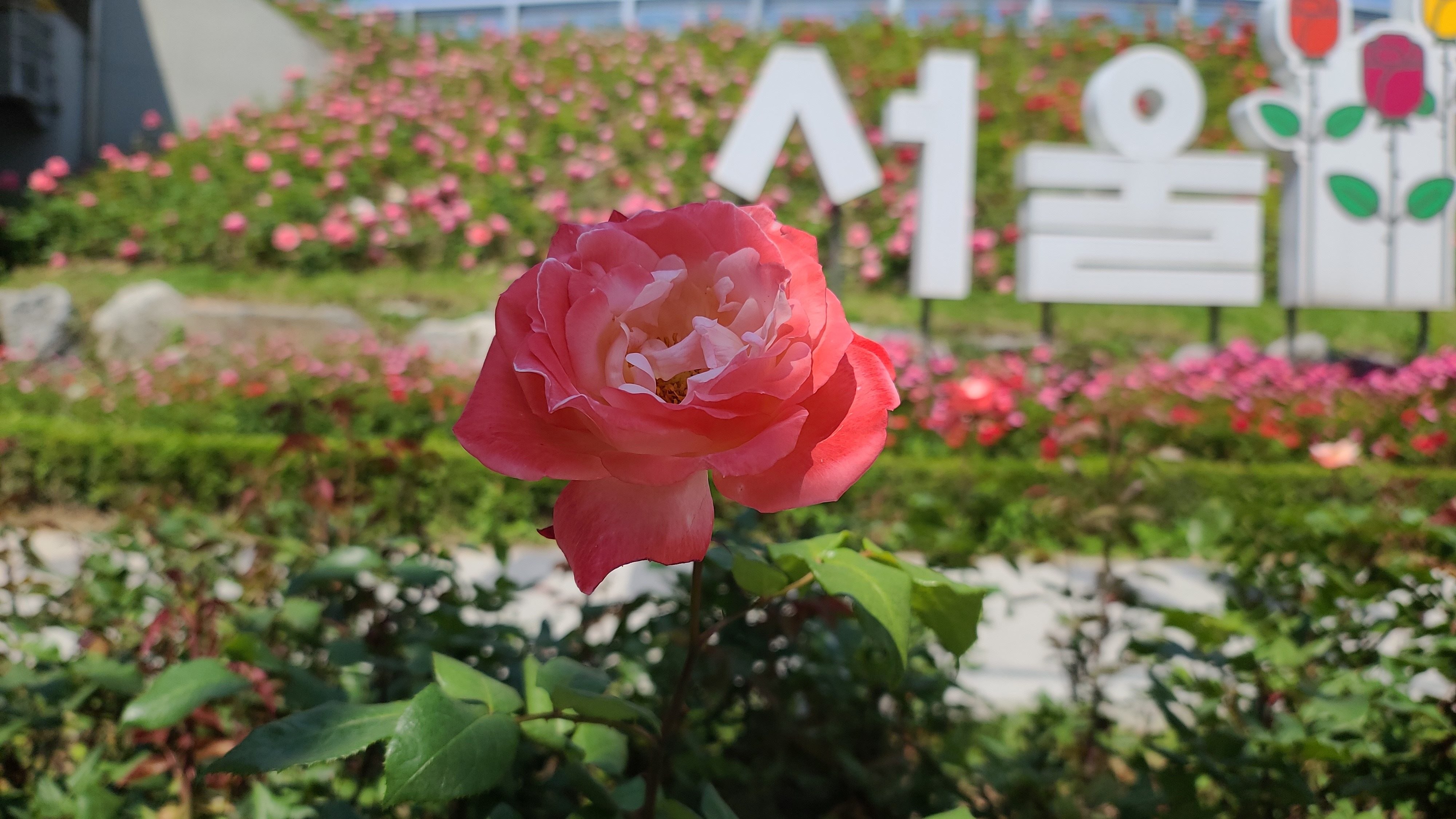 뚝방 위로 갖가지 빛깔의 장미꽃들이 지천으로 피어있었다.