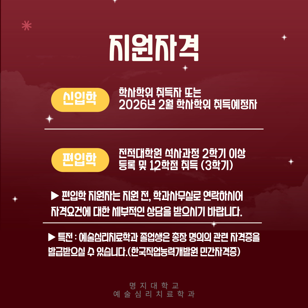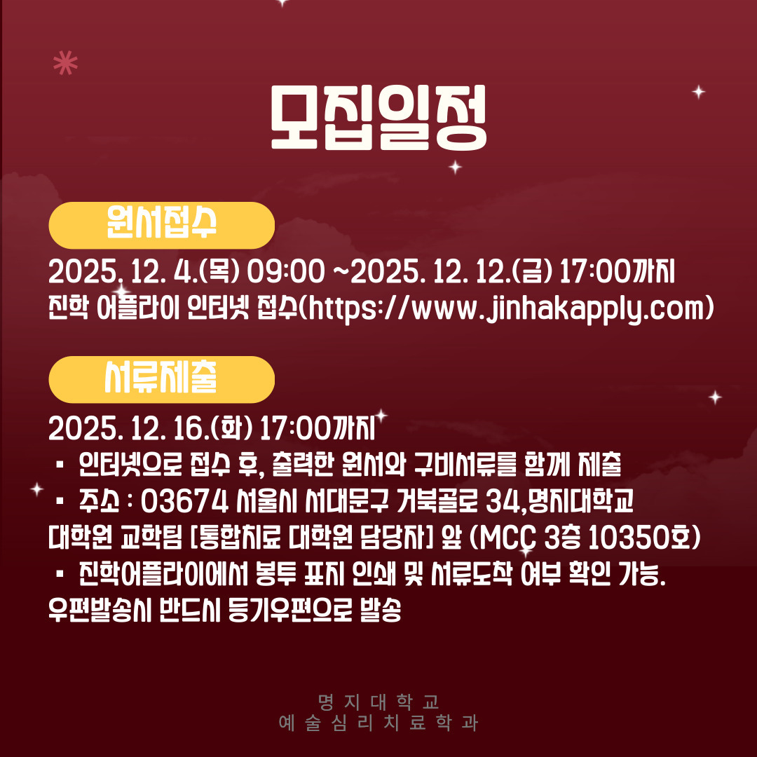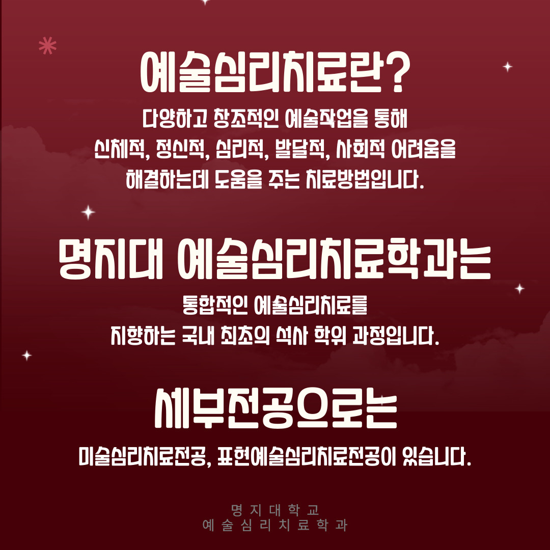 안녕하세요 명지대학교 예술심리치료학과입니다 :)