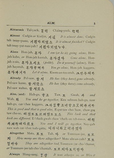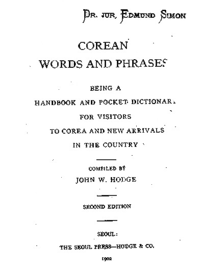 “Corean Words and Phrases being a handbook and Pocket Dictionary