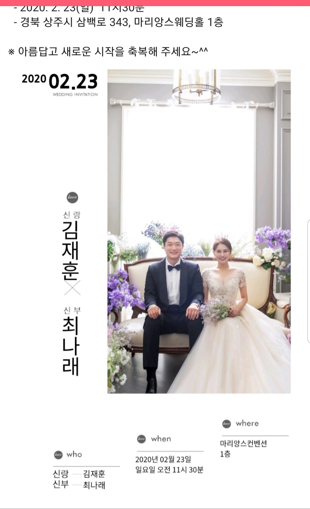 축 협회 김성호이사님 아들 결혼 작성자전무이사 김종만|작성시간20.01.28|조회수202 목록 댓글 1 글자크기 작게가 글자크기 크게가 다음검색 현재 게시글 추가 기능 열기 북마크 공유하기 신고 센터로 신고 댓글 댓글 1 댓글쓰기 답글쓰기 댓글 리스트 작성자김성기 | 작성시간 20.01.29 이사님 ..축하 드립니다 댓글 전체보기