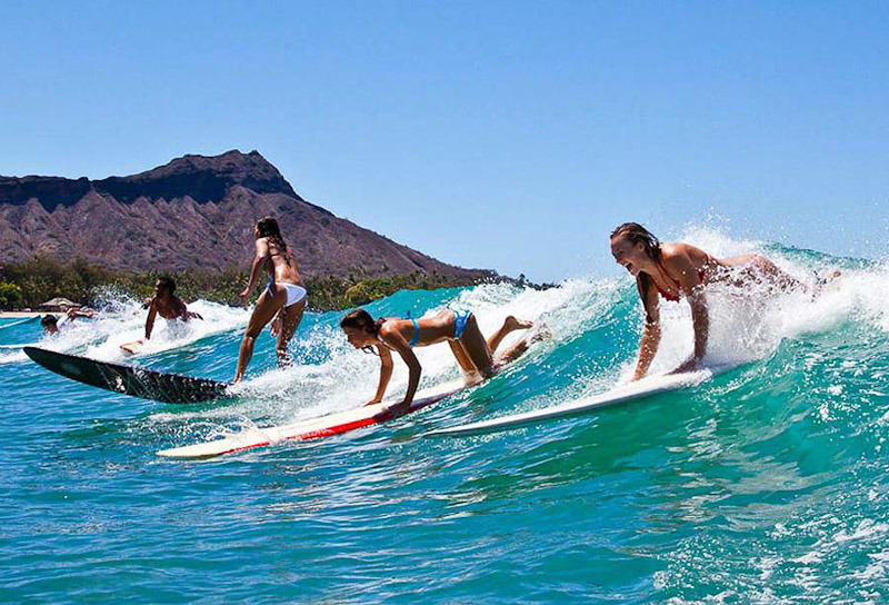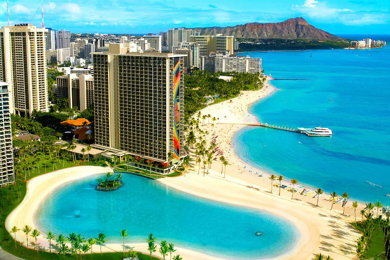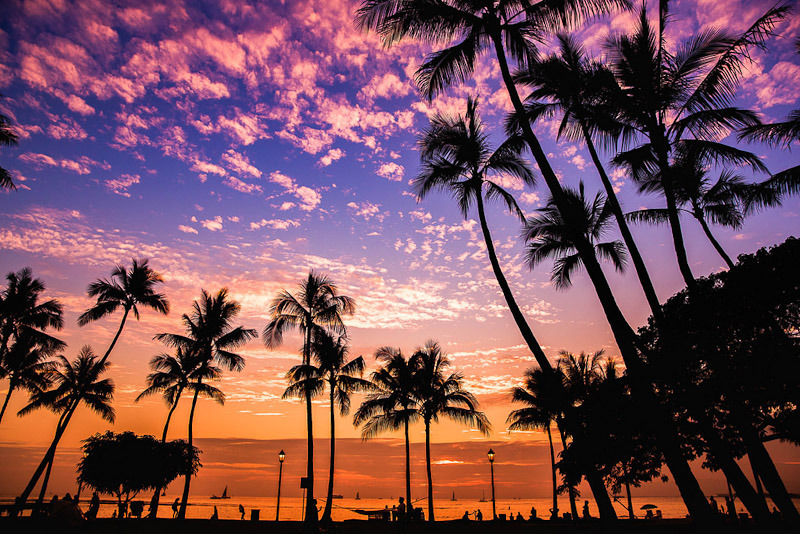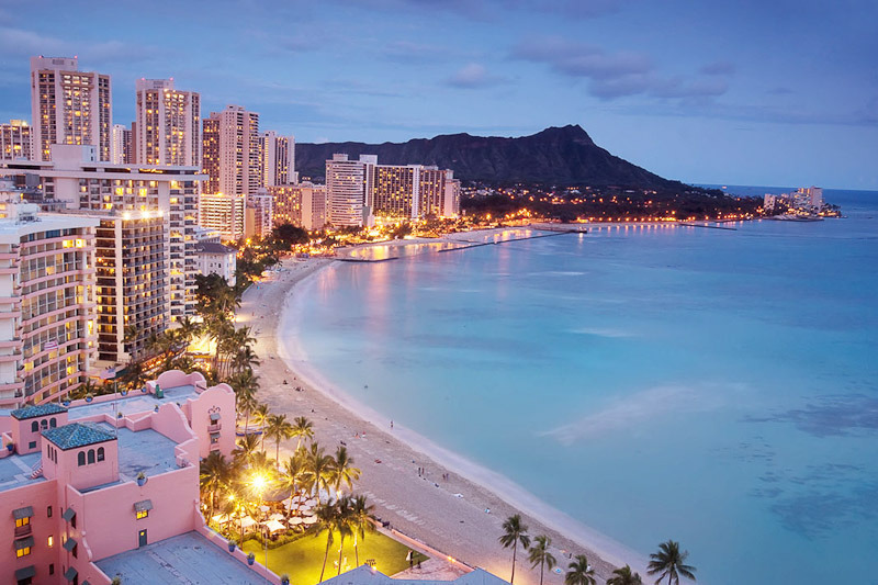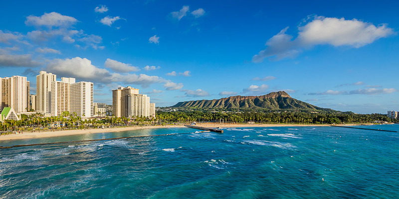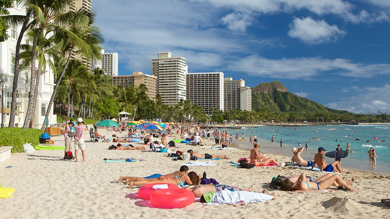 | 와이키키(Waikiki)는 호놀룰루 근처에 있는 해변으로 하와이 주 오아후 섬의 남부 해안에 위치한다. 와이키키는 하와이 어로 "용솟음치는 물"을 의미한다. 이름에서 알 수 있듯 와이키키는 섬의 내륙과는 달리 물이 풍부하다. 19세기에 하와이 왕족이 즐겨찾은 와이키키는 옛날부터 휴양지로 유명했다. 하와이를 대표하는 비치로 관광객들이 가장 많으며 약 3.2km의 백사장이 펼쳐져 있다. 와이키키는 크게 3km의 해변 전체를 통틀어 일컫지만, 8개 정도의 해변으로 분류되며, 실제 ‘와이키키 비치’는 쉐라톤 와이키키 호텔과 모아나 서프라이더까지의 구간이다. 나머지 해변은 포트 데 러시 비치, 쿠히오 비치 등 각각의 명칭이 있다. 와이키키 비치는 얕은 수심과 잔잔한 파도를 자랑하는데, 이는 비치 한쪽을 방파제로 막아 놓았기 때문이다. 때문에 어린이들의 물놀이로도 제격! 방파제 바깥쪽으로는 초보 서퍼들이 서핑을 즐길 수 있을 정도의 바다가 펼쳐져 있다. 하와이의 대표적인 비치인만큼 세계 각국의 사람들을 볼 수도 있는 곳! 각자의 방식으로 휴식을 취하는 수많은 사람들을 구경하는 재미가 쏠쏠하다. |