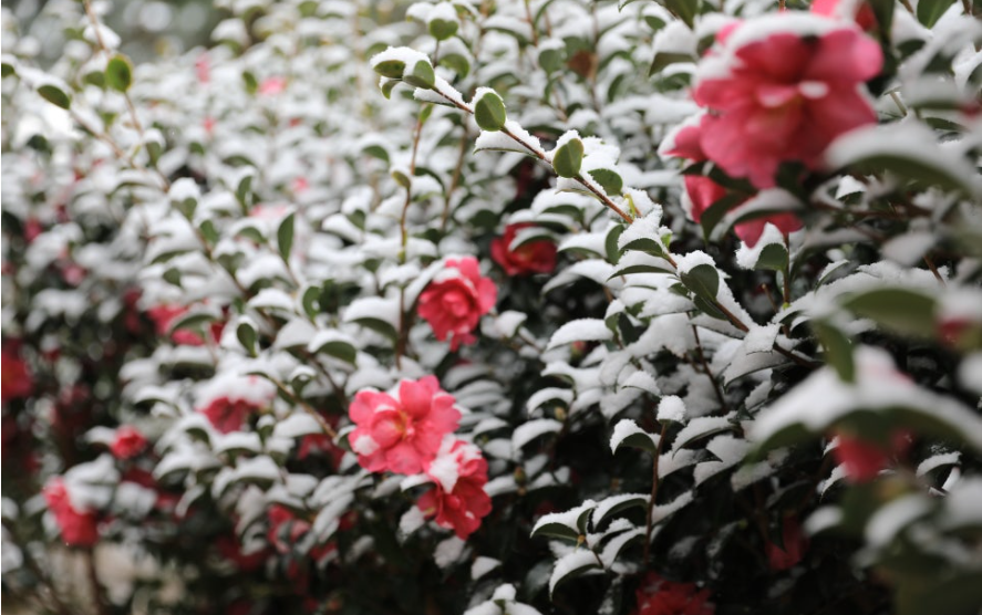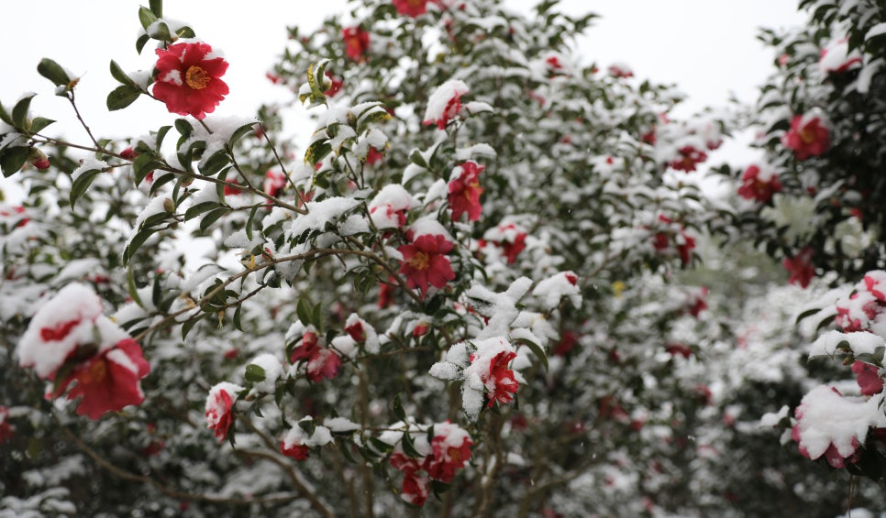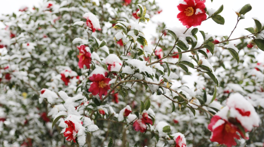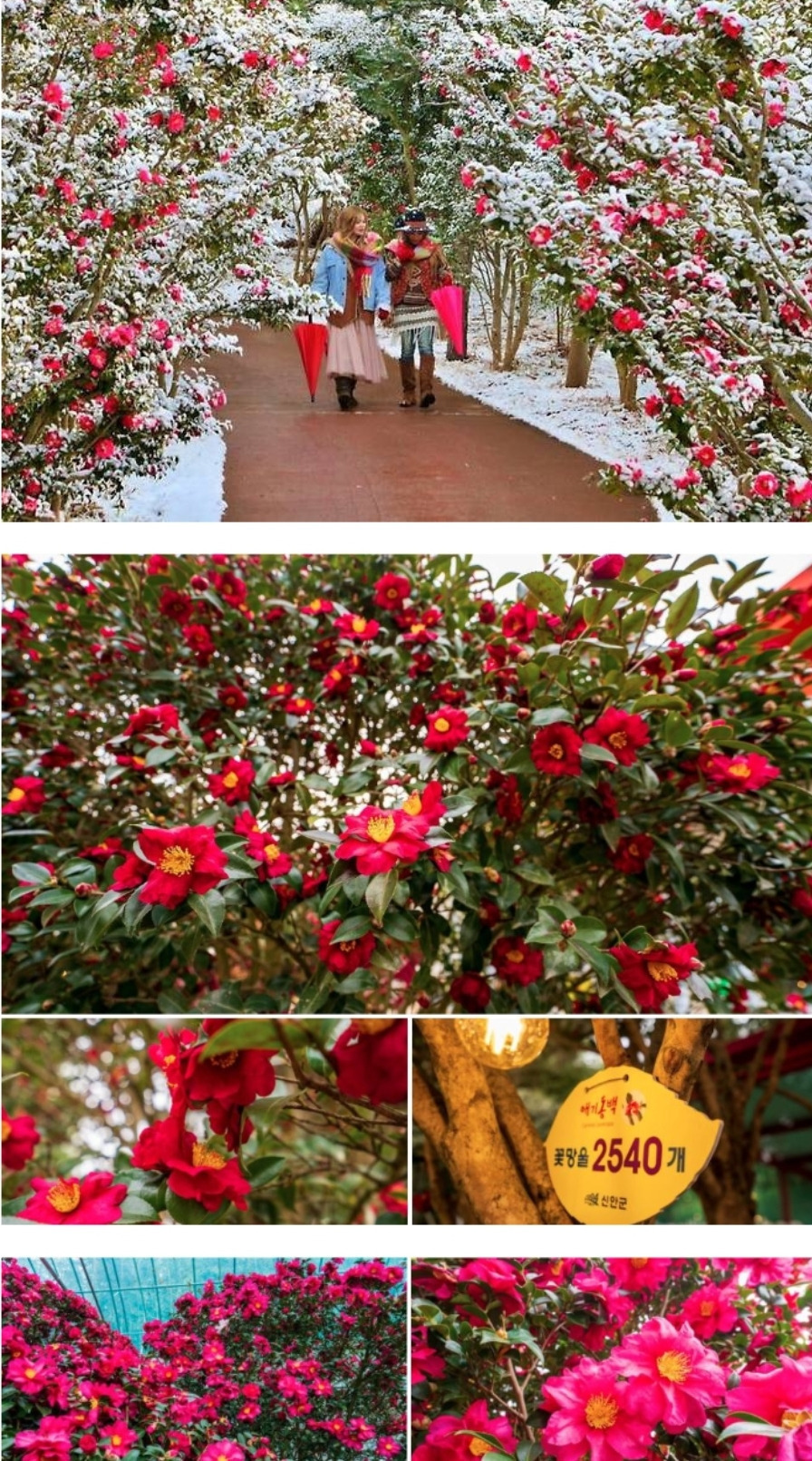 동백꽃과 눈의 환상적인 조화, 압해도에서 만나다