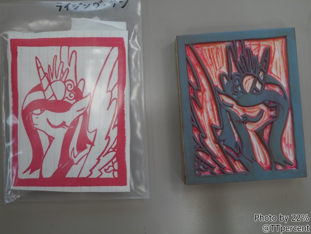 押した様子と消しゴムはんこ
