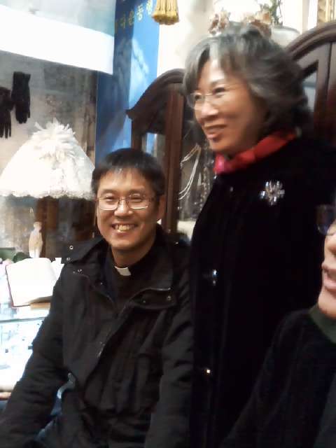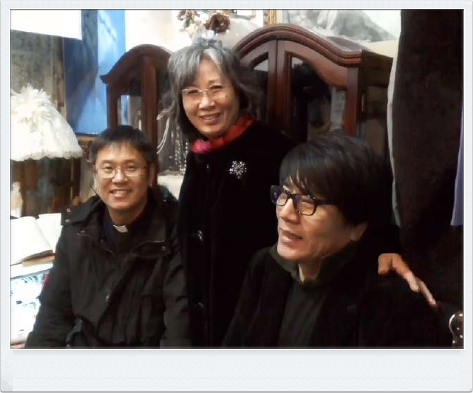 최 레오신부님과 유 기복히지노 찬양선교사님 그 사이에 활짝 핀 창고지기 막달레나