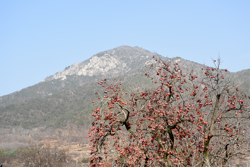 노거수(굴참나무?)도 아름답고, 그 뒤로 우뚝 솟은 조계산이 가슴 설레게 한다.