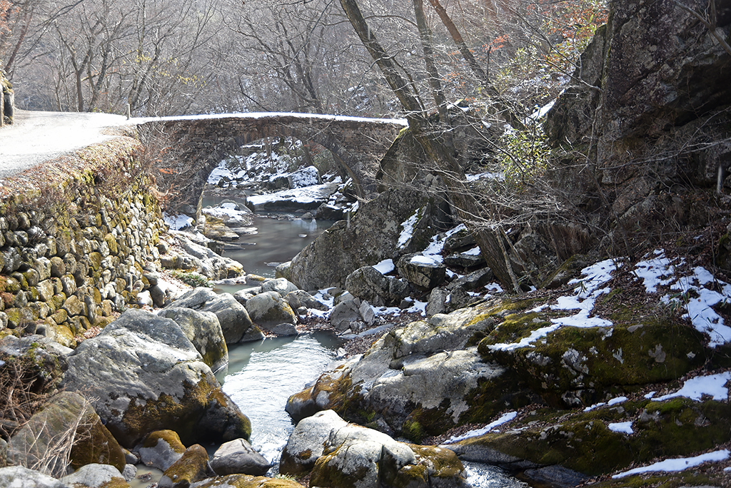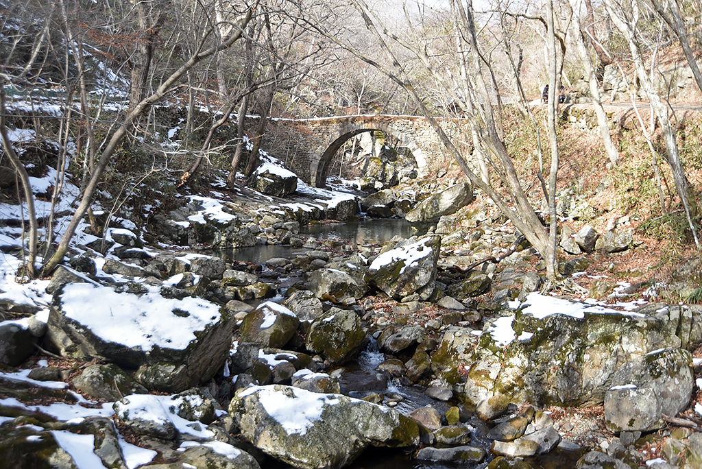 형을 이루고 있는데, 물에 비쳐진 모습과 어우러져 완벽한 하나의 원을 이룬다. (……) 이 다리는 숙종 39년(1713)