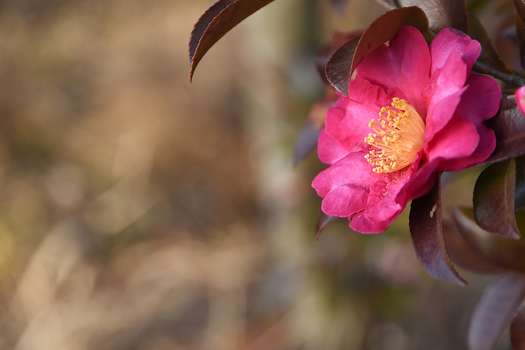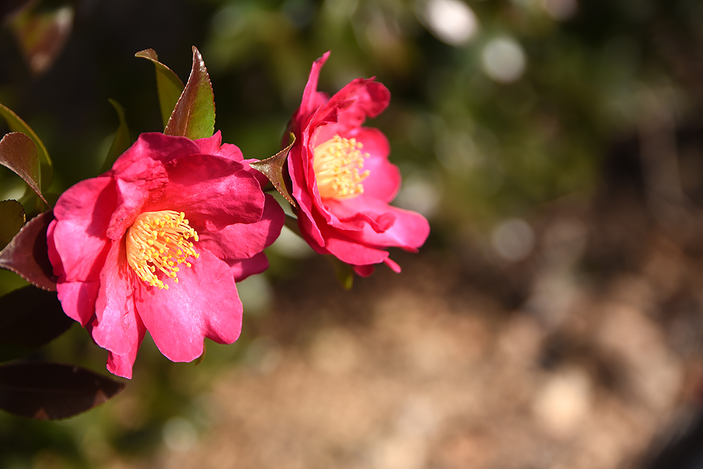 동백은 꽃망울 맺혔고, 애기동백은 벌써 끝물이다.