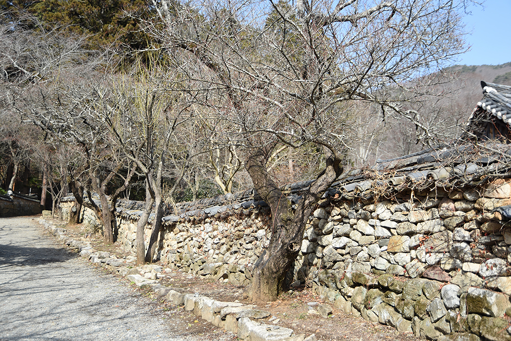 원통전과 각황전을 따라 운수암으로 오르는 돌담길에 50주 정도 있다.