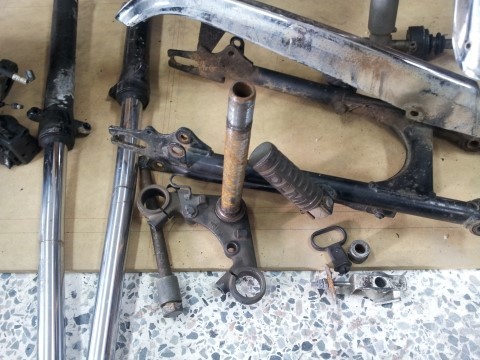CG125 스윙암과 체인가드, VF125 삼발이, 앞포크(둘다 이너튜브 휨)