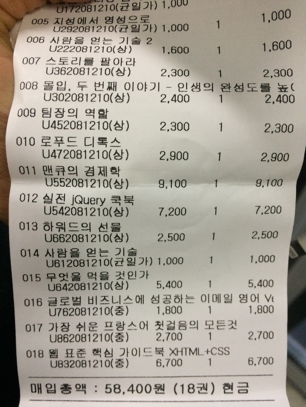 제가 가져간 책은 18권 새책인데 천원하는것도 있고 해서 팔까 말까 고민하다가