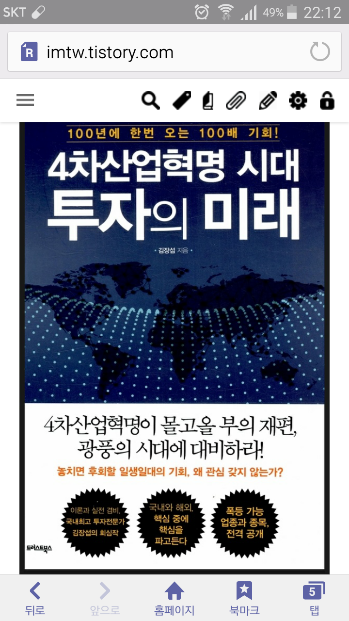 그러면서 얼마전 읽은 "김장섭의 4차산업혁명 시대 투자의 미래"라는 책이