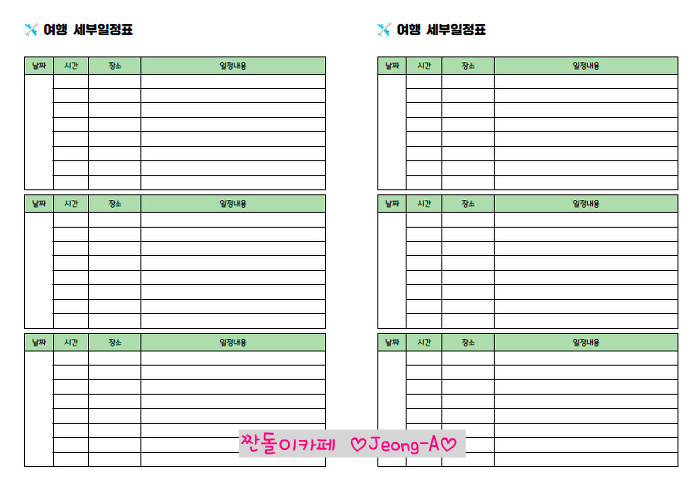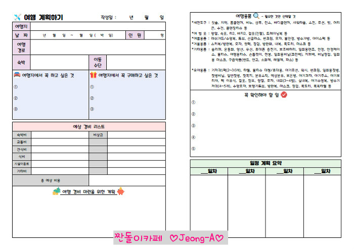 며칠 전에 여행 계획표 양식 올렸었는데 말씀드린대로 편집본 공유합니다.^^