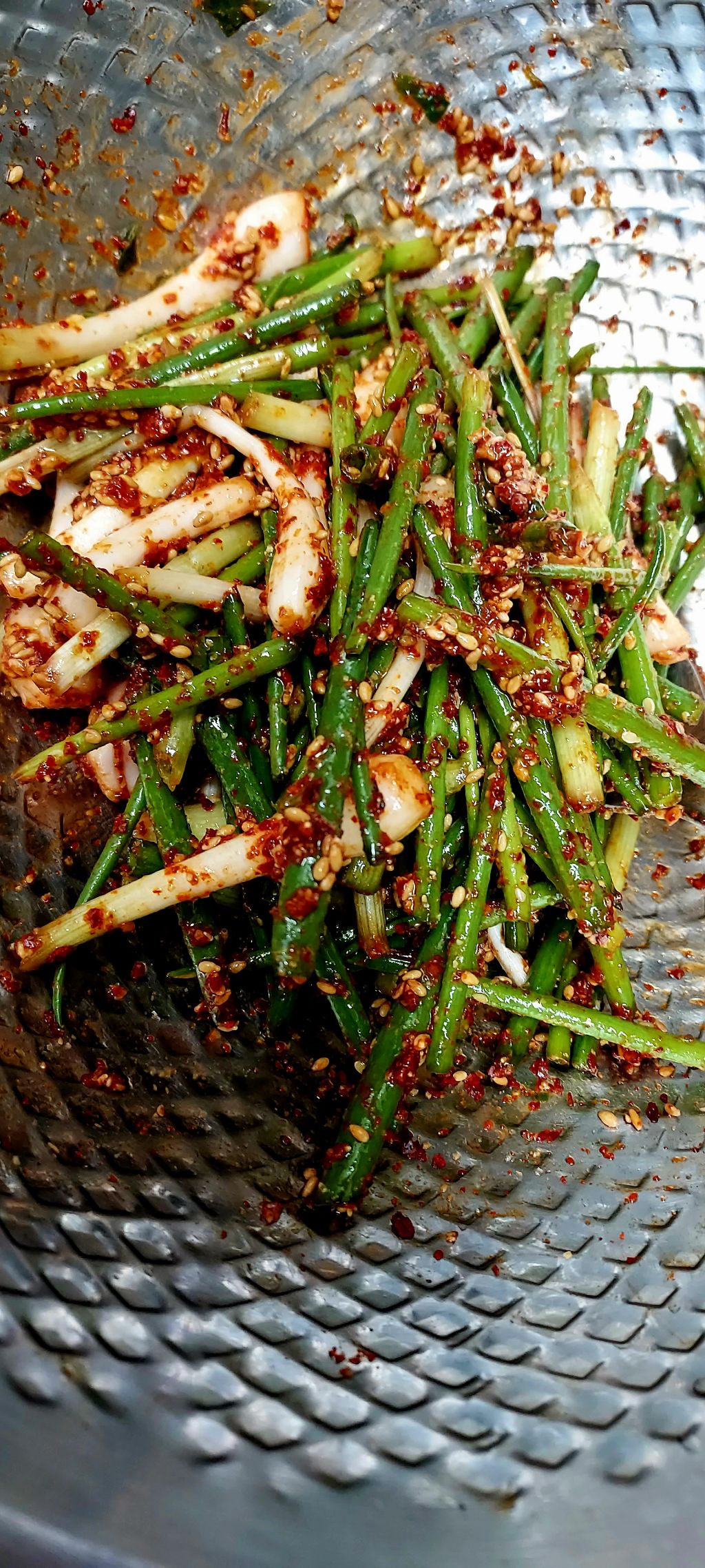 들기름 듬북 뿌려서 살짝 불기운만 내어 양념장에