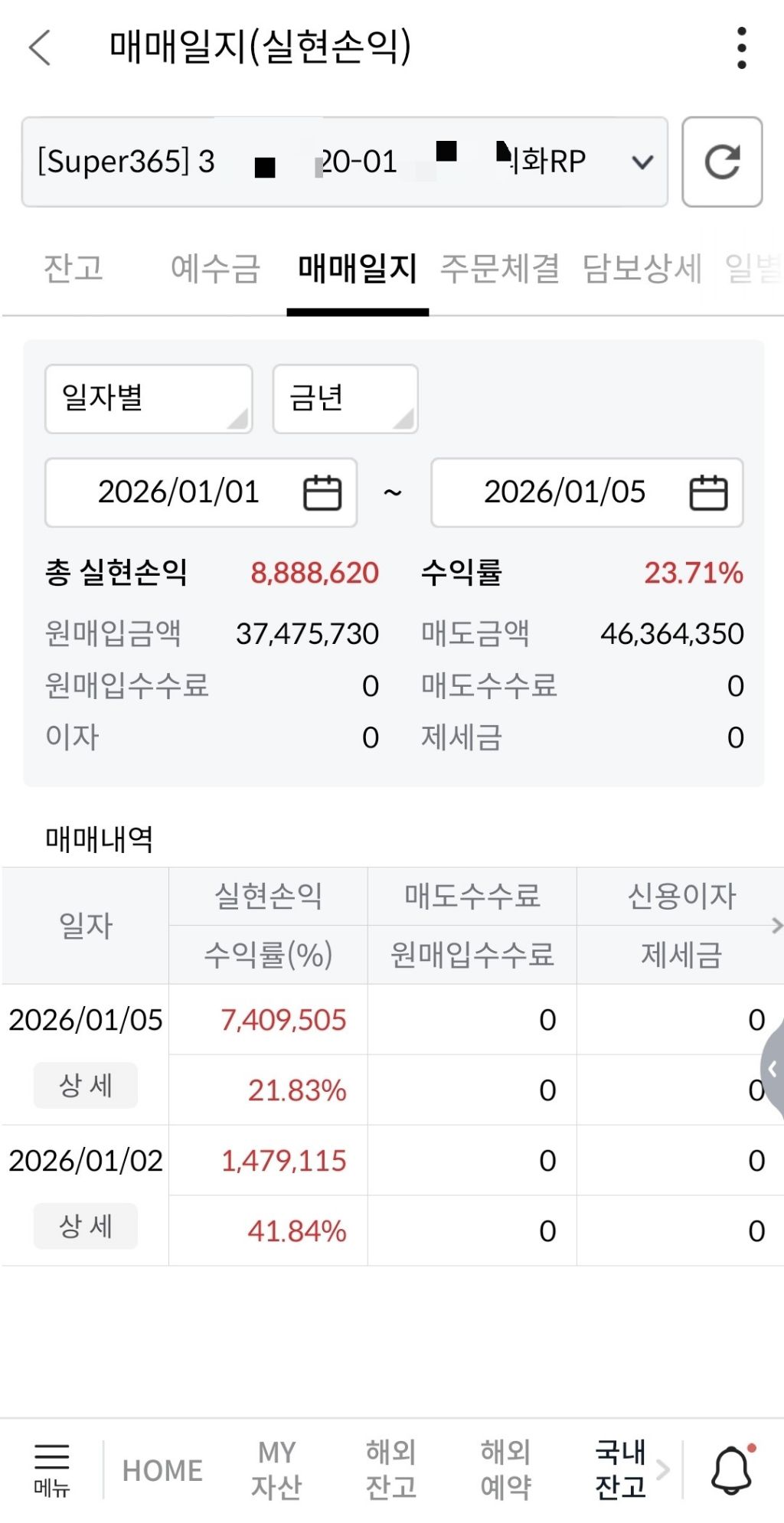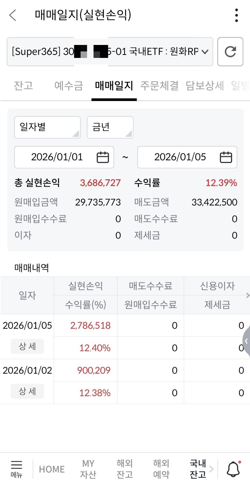 새해 첫날부터 코스피가 급등한 덕분에 수익을 낼 수 있었네요.