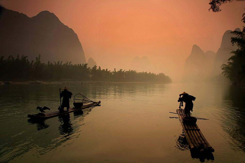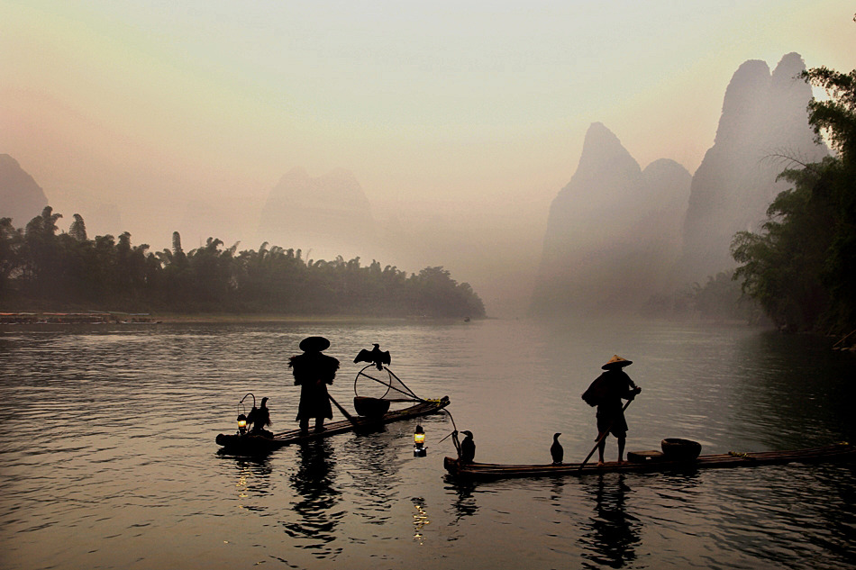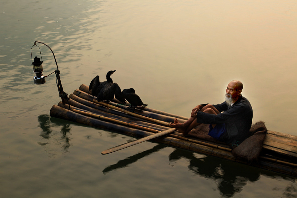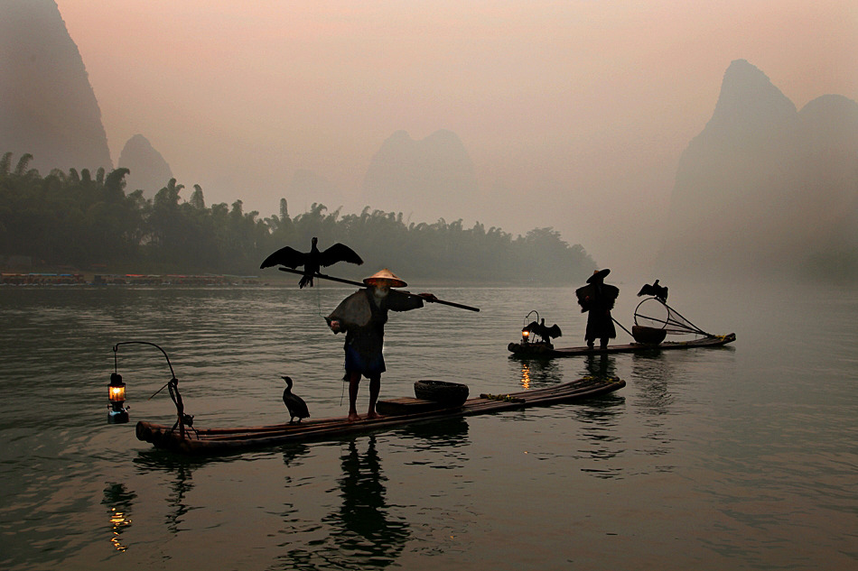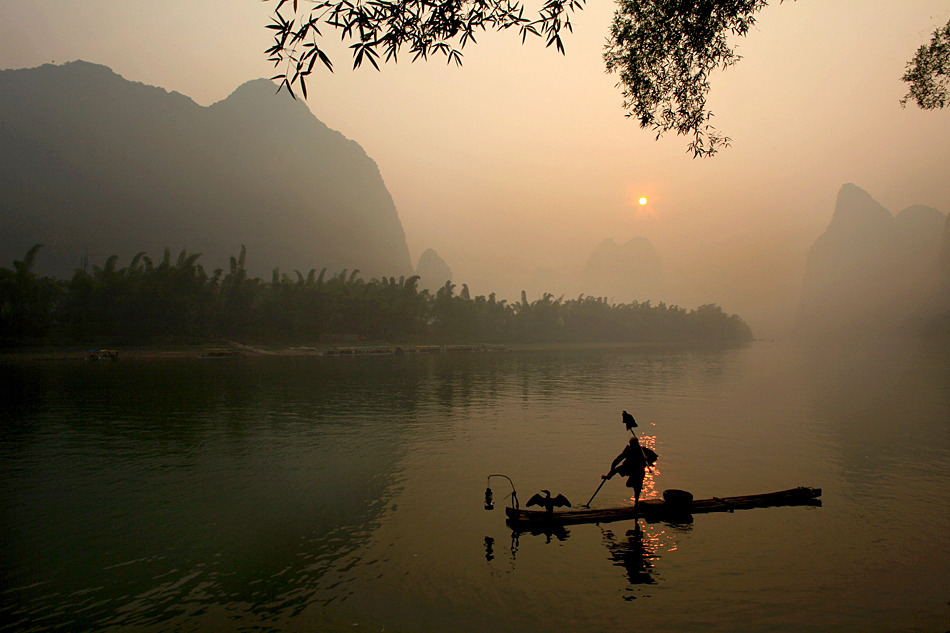 계림 이강에서 가마우지로 물고기를 잡는 늙은 어부의 아침 풍경입니다. (촬영 : 2011.05.31.)