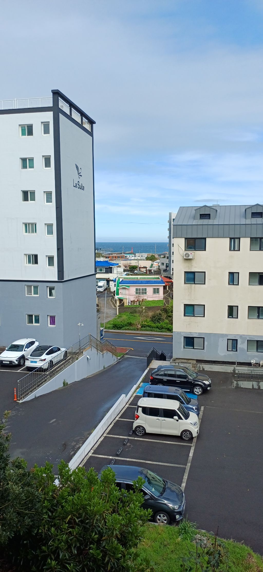 아침에 설겆이하며 주방창문을 활짝 열어보니 멀리 보이는 바다와 하늘이 맑아서 기분까지 좋아졌답니다