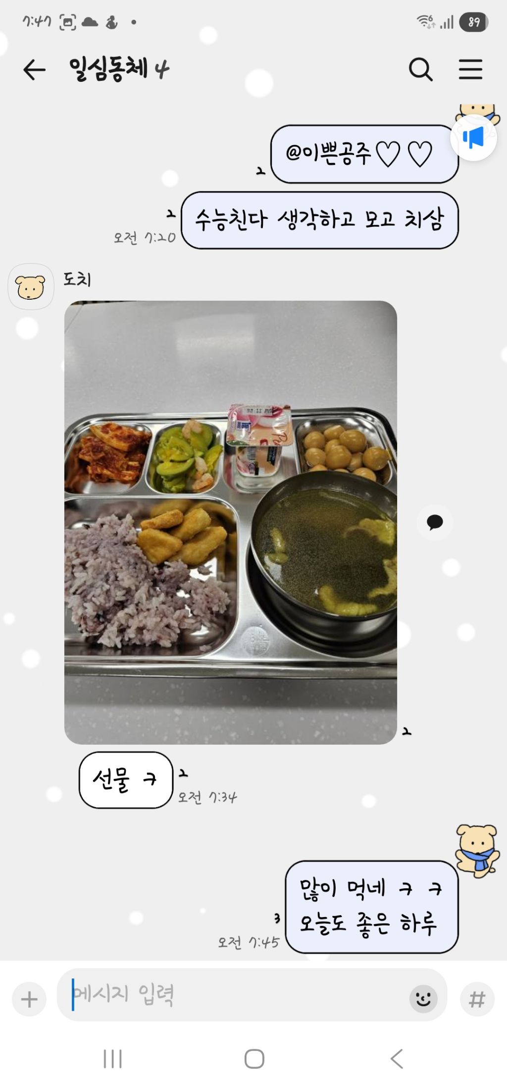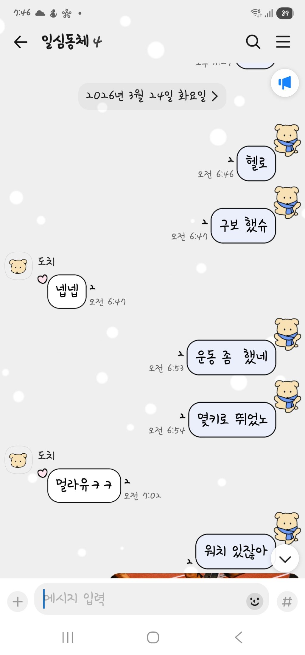 작성자하나[운송/74/제주] 작성시간 26.03.24 식판사진보다 알콩달콩 카톡문자에ㅡ눈이