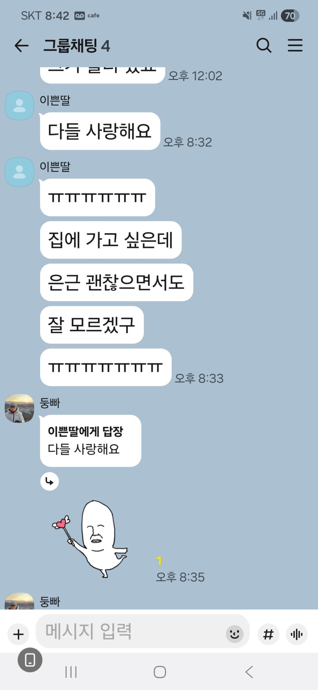 어제도 통화하다 점오한다고 말도 몇마디 못하고 끊었어요 ㅜㅜ