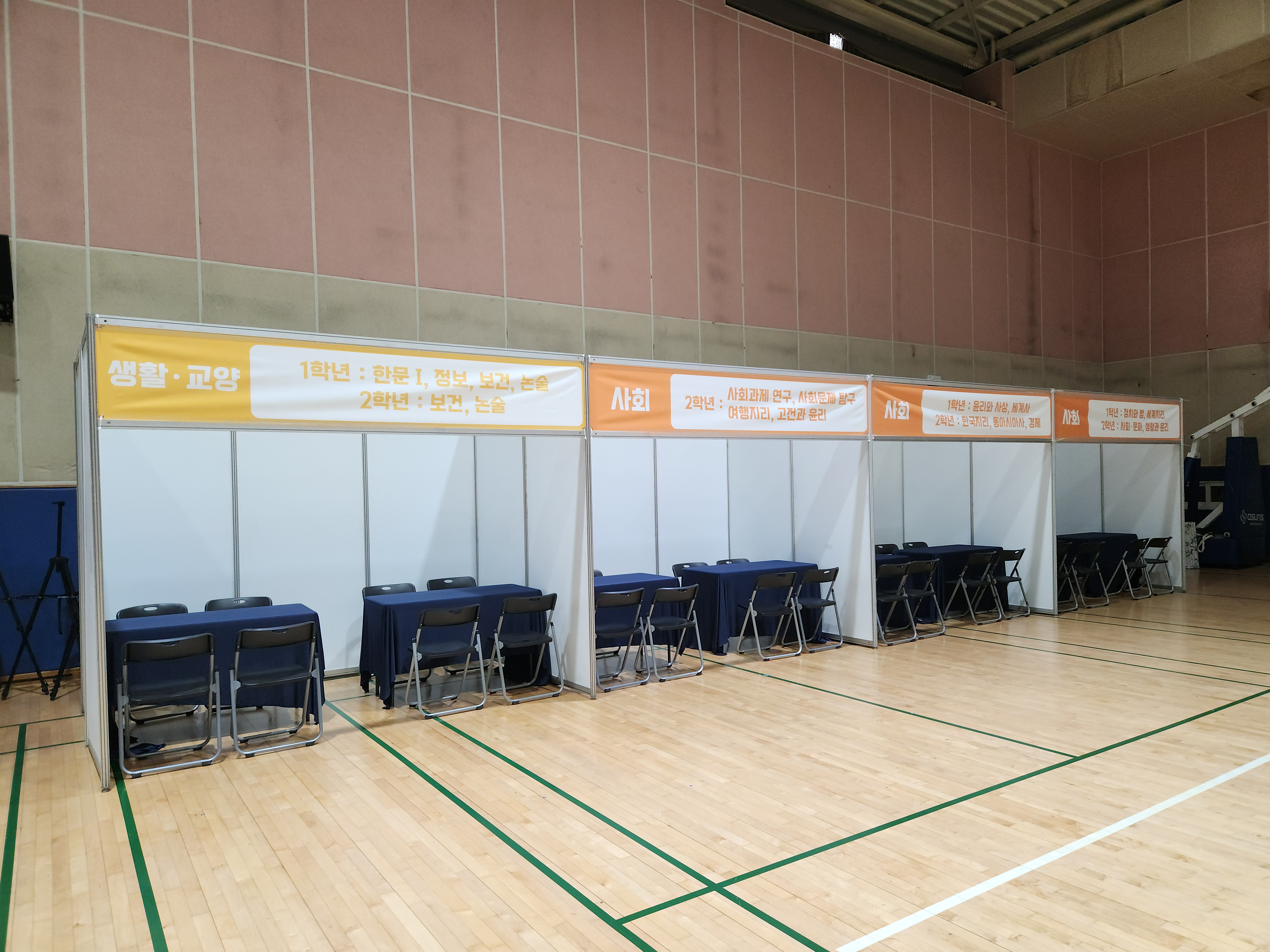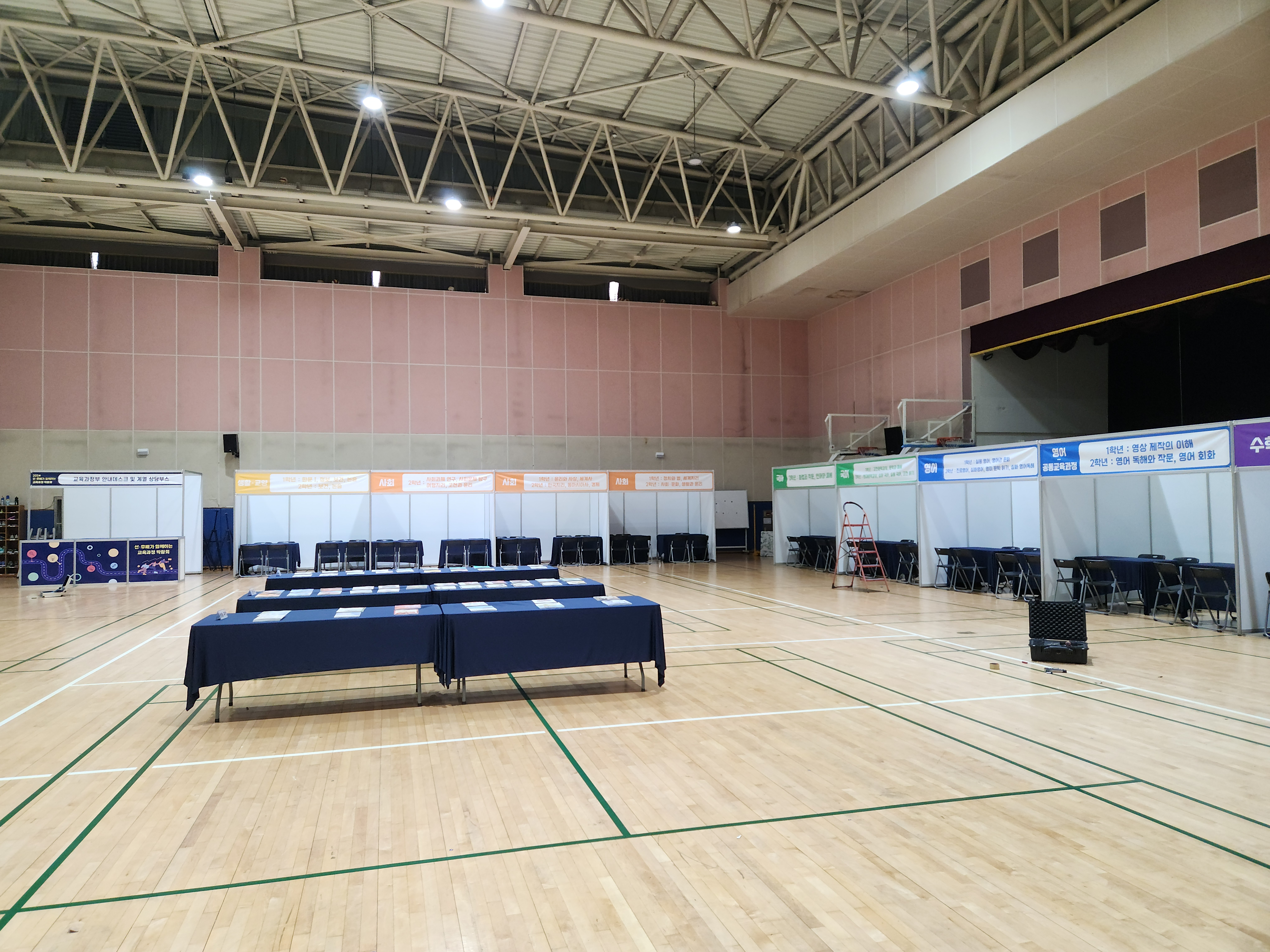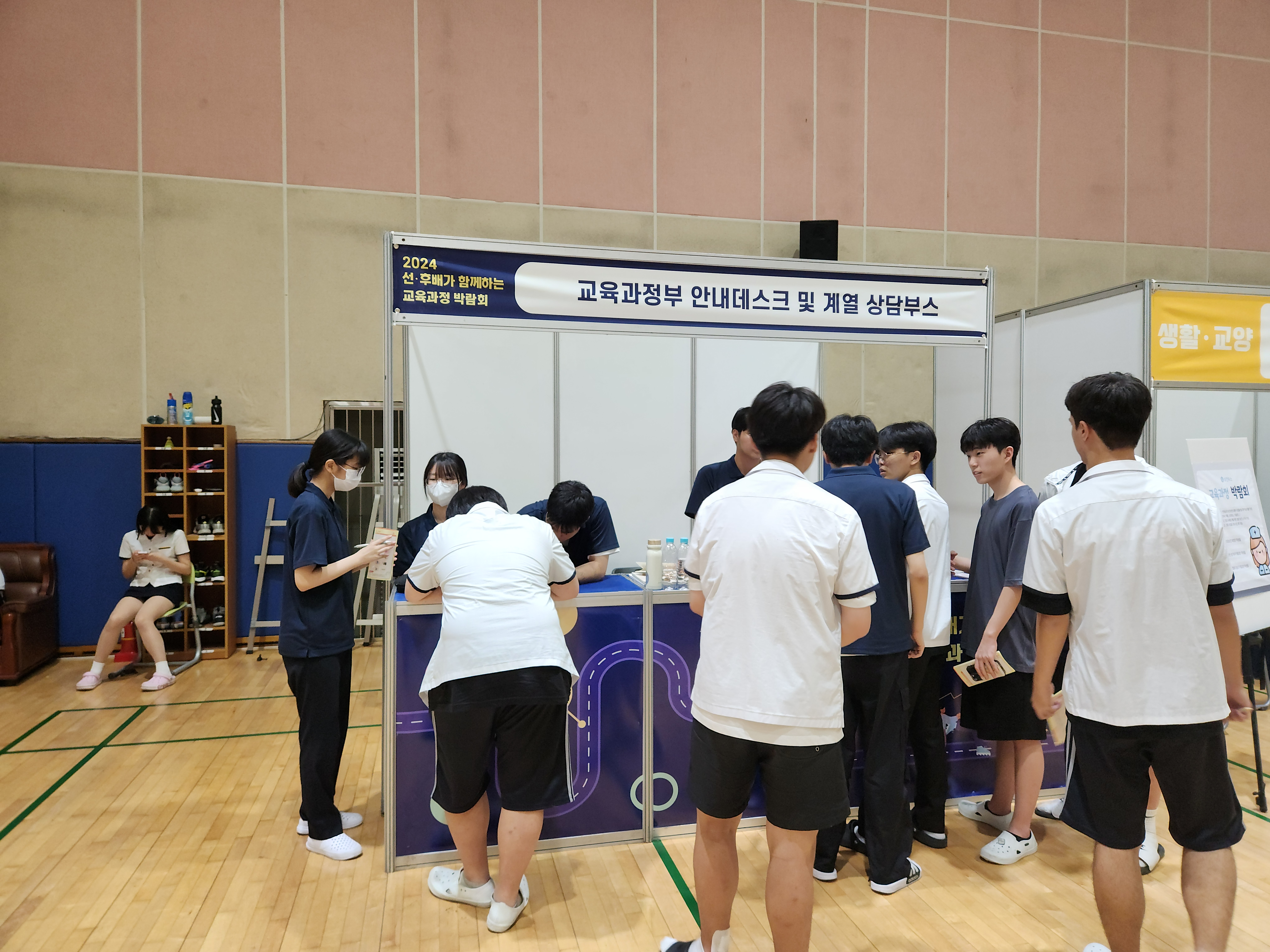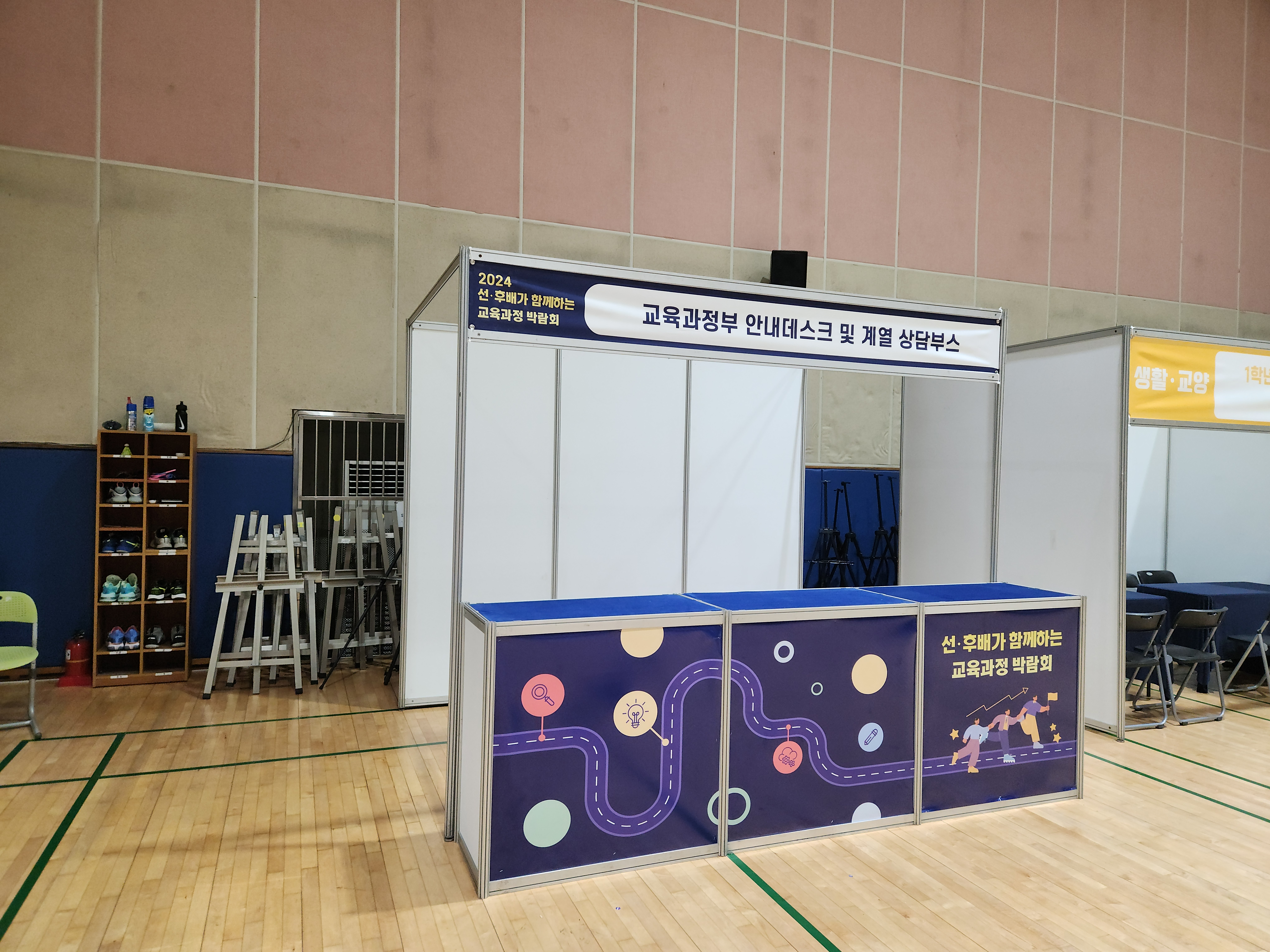 2024년 7월 12일 울산 문수 고등학교 선, 후배가 함께하는 교육과정 박람회 전시부스 설치가 진행되었습니다.