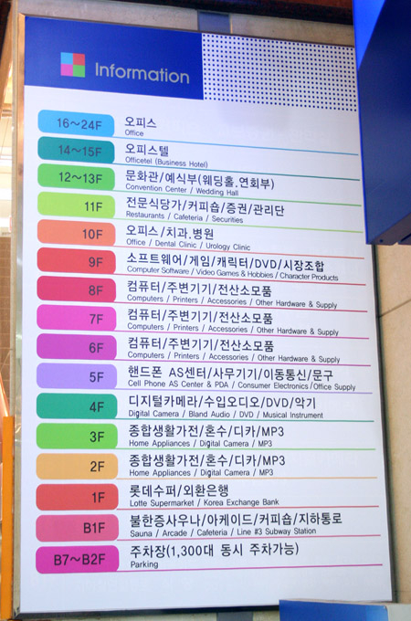 국제전자센터의 안내문이다. 전자센터라는 이름에 맞게 대부분 전자기기를 판매한다. 하지만 전자센터에 와서 전자기기를 탐방하는 것은 너무 뻔하지 않는가?