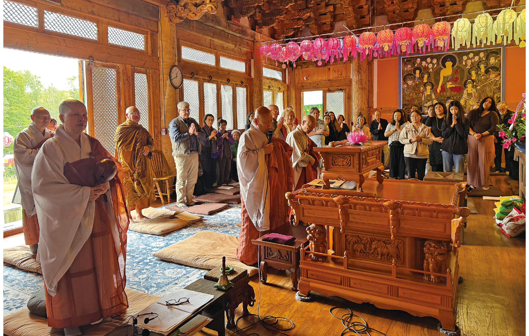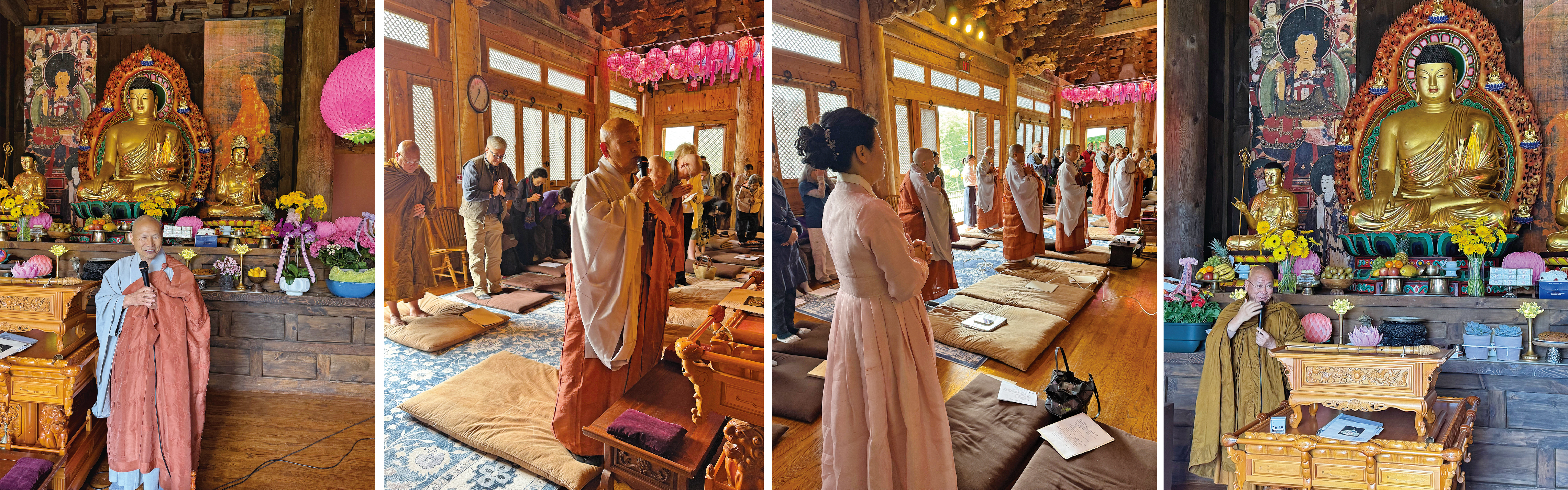 이 자리에 귀빈들이 많이 참석하였습니다. 높은 학식을 가지고 서부에서 최근에 동부로 포교를 위해 오신 진월스님, 인도 보드가야에서 빨강 옷 입고, 인도불교 부흥을 위하여 30년 동안을 불교학교를 만들어 스님을 키우고 있는 붓다팔라스님, 커네티컷 주 대연불보정사 대산스님, 필라델피아 관음사 선문스님, 오랜 신도인 메리 조, 모두 참으로 귀중한 인연입니다,“라고 진심을 담아 애정이 넘치는 인사말을 했다.