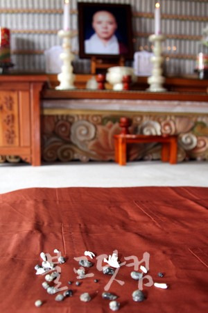 5월 31일 '4대강 개발 즉각 중지' 유서를 남기고 낙동강 지류에서 소신공양한 문수 스님의 다비장인 연화대에서 사리 30과가 수습됐다.