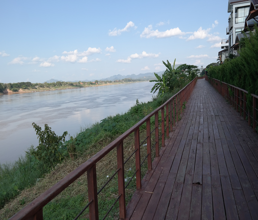 강 건너로는 라오스가 바로 보이는 곳인데 마치 정지한 듯 아주 느리게 흐르는 강 풍경을 보고 있으면 세상 시름을 다 잊을 것 같다. 이 강변을 따라 호텔과 게스트하우스 등이 줄지어 있는데 대부분 1층은 식당이나 가게를 한다. 이 식당에서 강변 풍경을 보면서 친구들끼리 술도 마시고, 차도 마시면서 즐거운 시간을 보내게 된다.