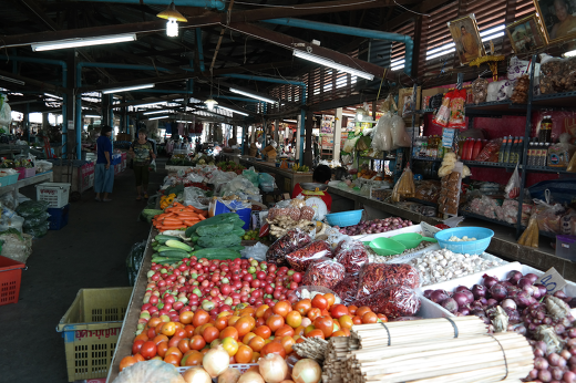 재래시장은 어느 곳이던지 그 지역의 활력의 크기를 느낄 수 있어서 나는 재래시장 방문을 좋아한다. 3차례 정도 이곳을 방문하여 길거리 음식을 사먹기도 하고, 과일도 샀다. 이곳의 분위기는 한국의 1970년대와 흡사했다. 이른 아침에는 많은 사람들로 북적댔다. 낮에 손님이 없는 시간대에 거울을 앞에 놓고 하얀 머리칼을 뽑는 중년 여성도 한국에서 보던 모습이고, 의자를 침대 삼아 낮잠을 즐기는 중년 남자 모습도 한국에서 본 옛날 모습과 똑 같았다. 과일과 채소, 닭고기, 돼지고기 등 식료품과 옷을 주로 팔고 있었다. 그런데 과일의 나라인 태국에서 ‘한국 감’이라는 원산지 상표를 붙인 감도 있었다.