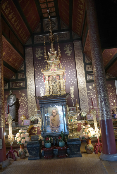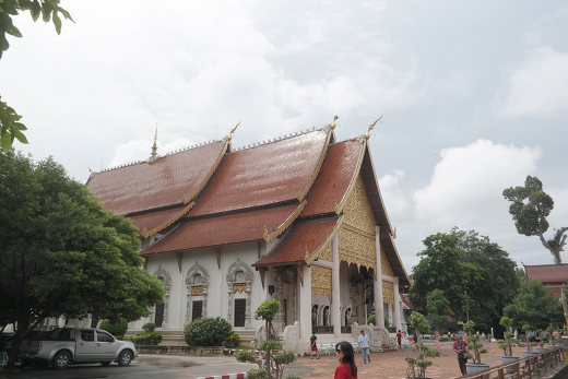 치앙마이 구시가지에 있는 이 사찰은 시내 번화가에 있는데 사찰에 들어서면 대웅전이 바로 보이는데 1928년 약 90년 전에 세워졌다. 내부는 금으로 화려하게 장식이 되어 있다. 내가 방문할 때에는 불과 몇 사람만이 있었다.