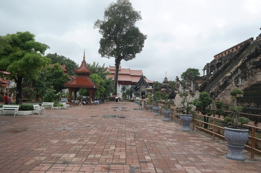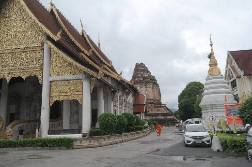 사찰은 이 탑을 중앙에 두고 부처님을 대웅전을 비롯한 많은 전각들과 법회와 기도를 하는 우보소 등이 직사각형으로 탑을 삥 둘러 싸고 있는 형상이다. <치앙마이 왓 체디 루앙,혹은 wat chedi Luang> 이란 단어로 유튜부 검색을 통해 보면 ‘왓 체디 루앙’ 사찰 전체 규모의 아주 웅장한 모습을 볼 수 있다. 지붕이 3겹으로 되어 있는 큰 건물의 지붕 한 가운데에 탑의 상륜부가 세워져 있는 것도 나에게는 볼 거리였다.