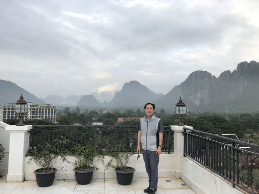 방비엥 호텔 옥상에서 필자