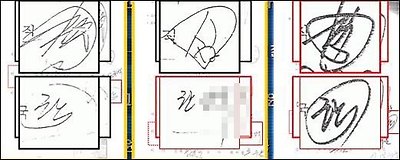 | ▲ 동일학원 심 아무개씨와 한 아무개씨의 사인. 동일인의 사인이 제각각이다. |