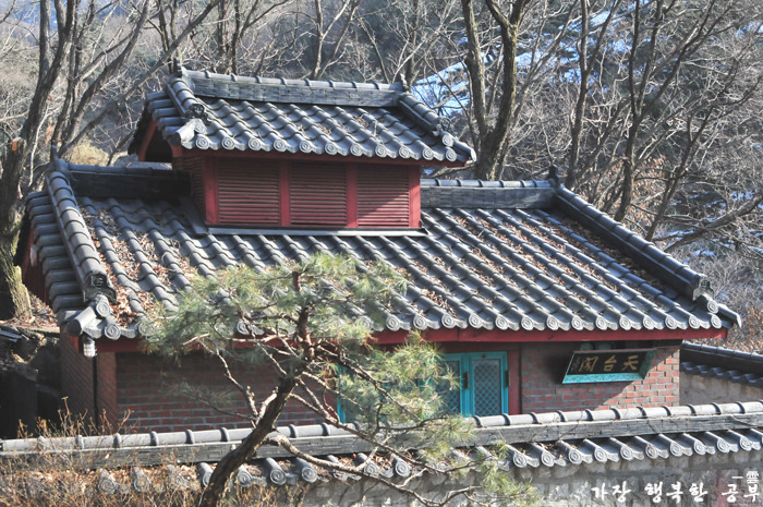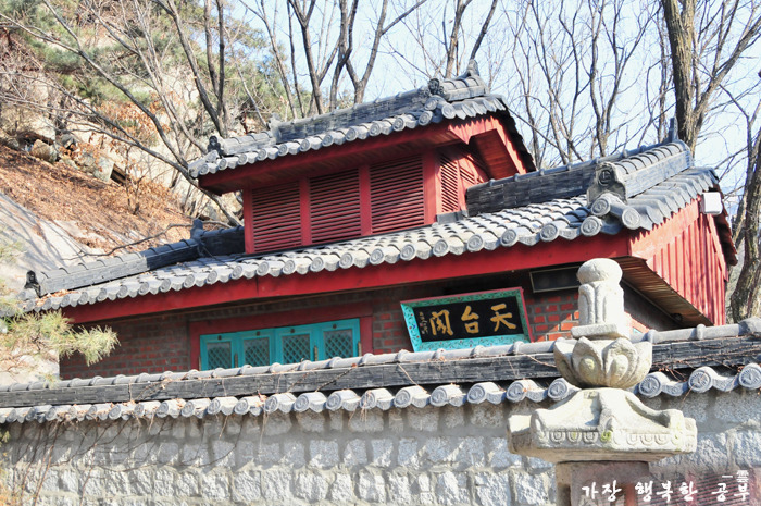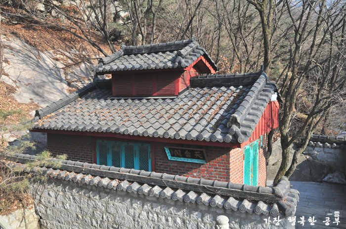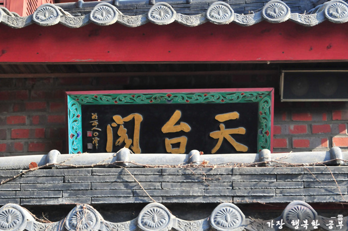 석불전 앞을 지나서 산령각으로 오르는 길 오른쪽에 위치한 천태각은 벽돌로 지어진 현대식 건물이다.