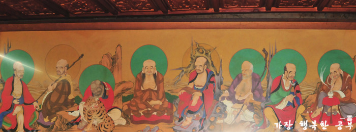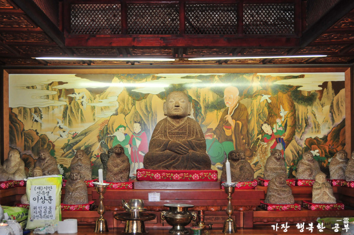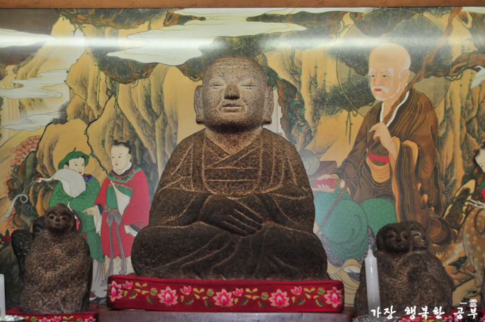 천태각 안에는 전국각지에서 모아진 석재로 조성된 나한상이 봉안되어 있다.