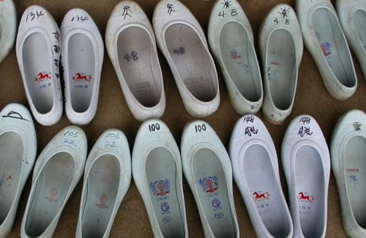번호가 씌어 잇는 스님들의 흰 고무신